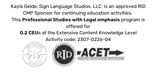 - CEUs: 0.2 RID Legal CEUs approved and Oregon court interpreters will be awarded two ethics credits for completing the workshop.