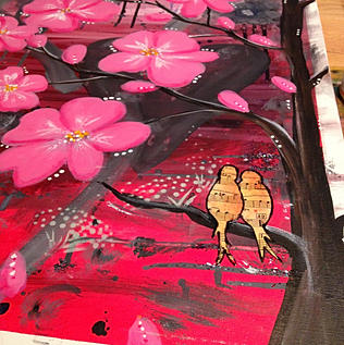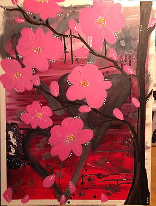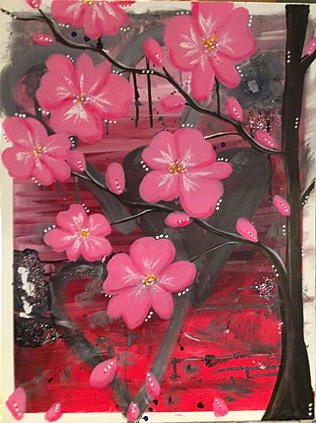 I added a cherry blossom tree (partial), shading, and my favorite thing – dots.
