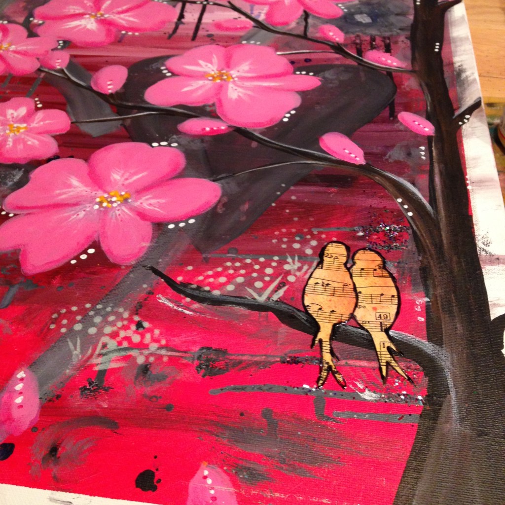 Then, I still didn’t feel done – I added some paper love birds – and now I’m done and I really like it!