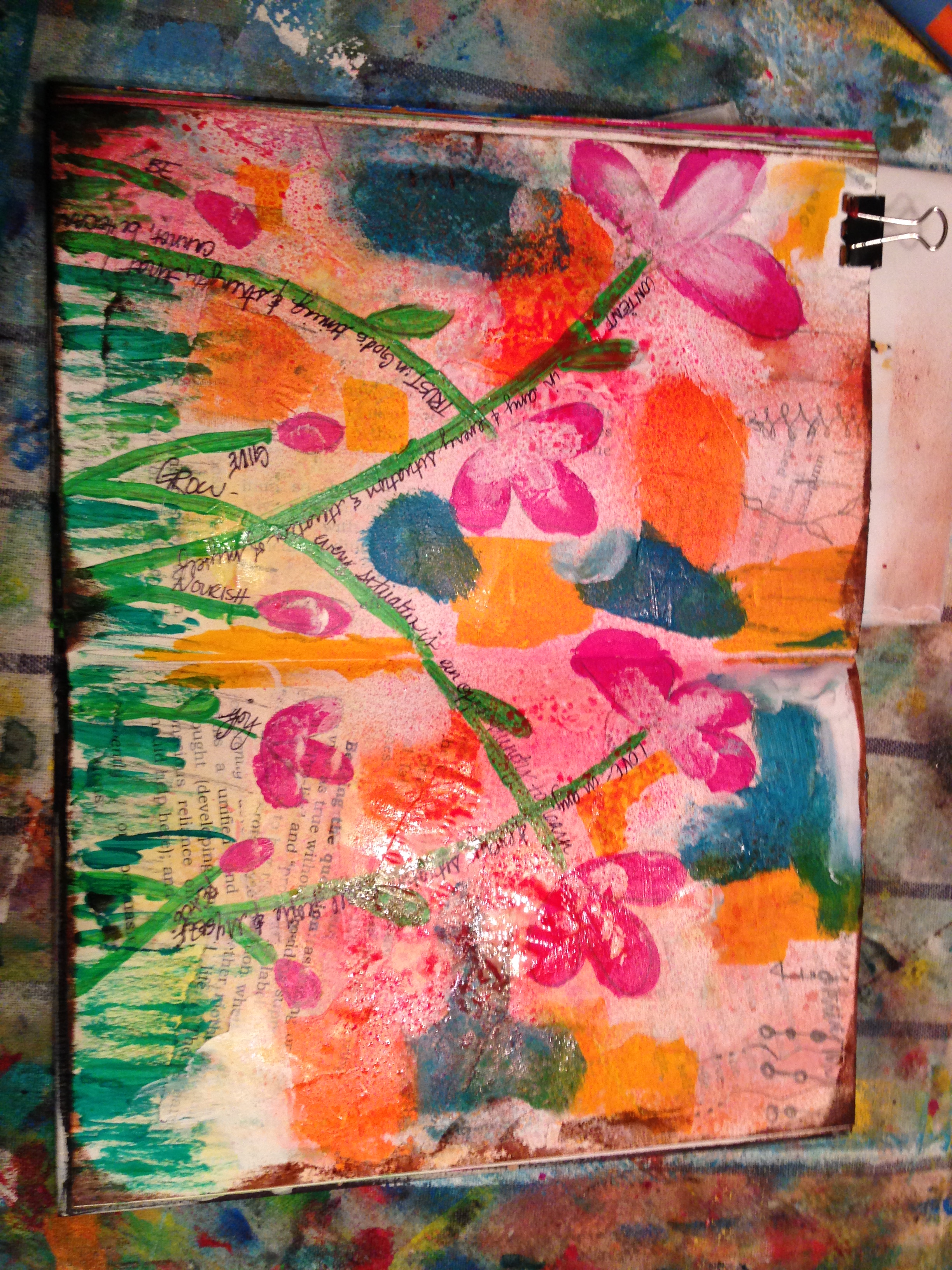 I did random book text from a book in my car, then added flowers and wrote my goals on the stems of the flowers.