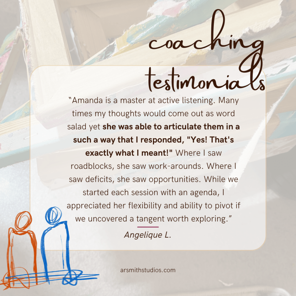 I believe that the coach is present to serve as a reflection tool – reflecting back patterns, statements, questions, circling back, reflecting back desires and intentions. A static and stable force to bounce one’s ideas off of and think through with care – reflecting toward wholeness